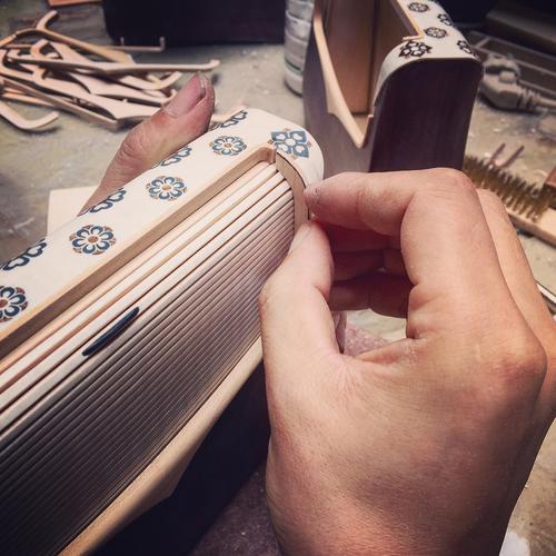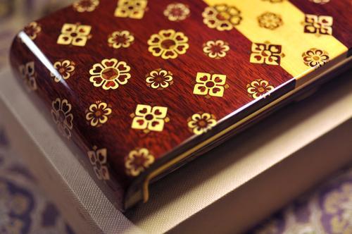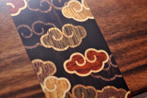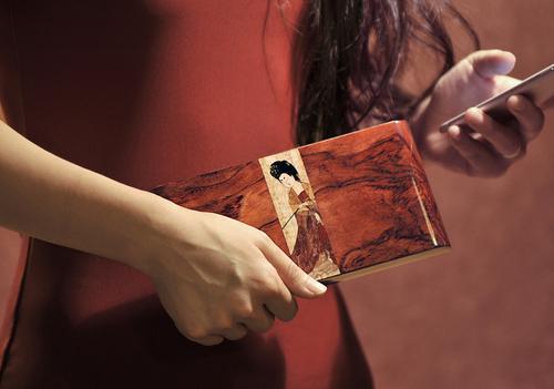 于是,拜师加自学,从选料、制坯到切割、打磨,三个人迅速地把自己武装成了可以出师的木匠。许多人以为手包上的花纹是印刷上去的,其实每一个细小的木料零件都由手工镶嵌。