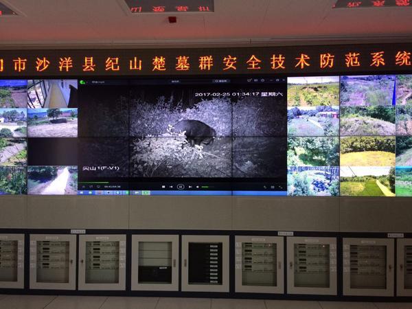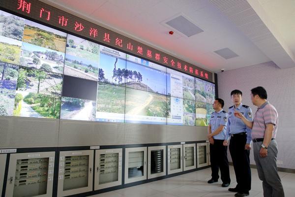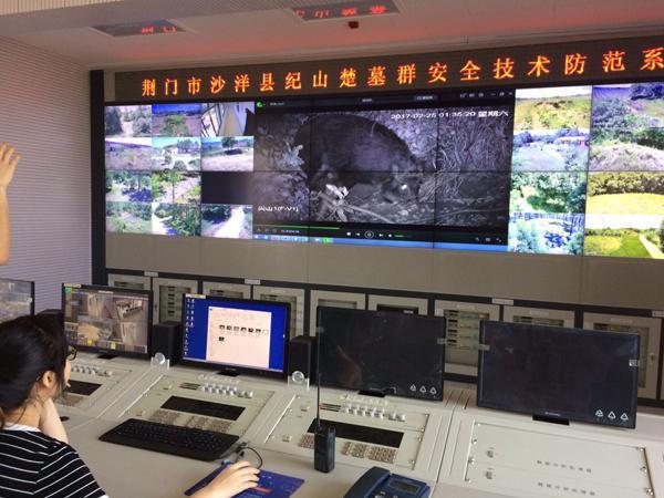 2015年5月,国家文物局又投入1460万元建设了由声纳和监控视频构成的纪山楚墓群安全技术防范系统。这套防护网通过声纳、高清红外监控摄像头对古墓葬和重要路口进行24小时实时监听、采集,通过声敏、视频、地图联动,一旦发现入侵系统自动报警并在3秒内弹出报警处位置地图,工作人员可远程监控,并同时通报巡逻队员现场核查。