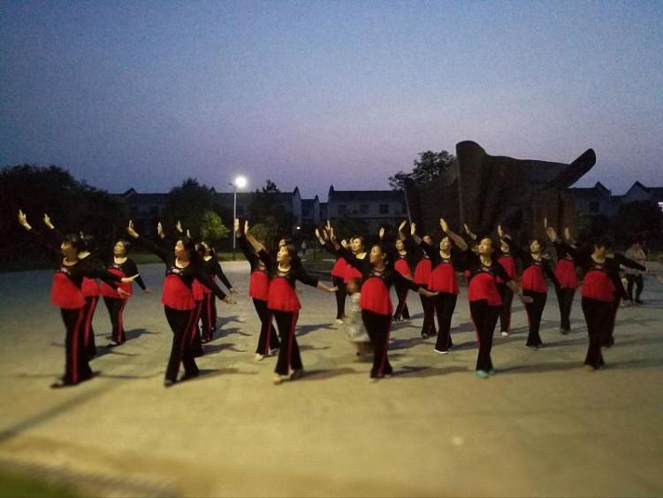 郭店村妇女广场舞。 褚潭辉 图现在的郭店村新农村房前屋后绿化满园,村里文化广场、医务室、超市、礼堂、健身器材等一应俱全。纪山楚墓群被盗掘案日益减少,近几年来,没有一名当地村民盗墓作案。