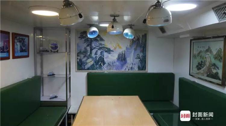 鱼雷舱的一侧,是一个小会议室。会议室的桌子和绿皮凳子以及墙上挂的两幅画都是“原装”的。