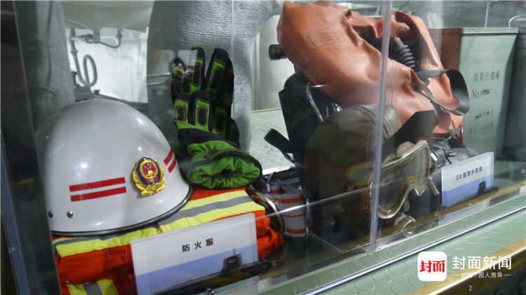 在这个舱里还展示有两套服装,一套防火服,一套潜水装具。都是为发生特殊情况准备的。