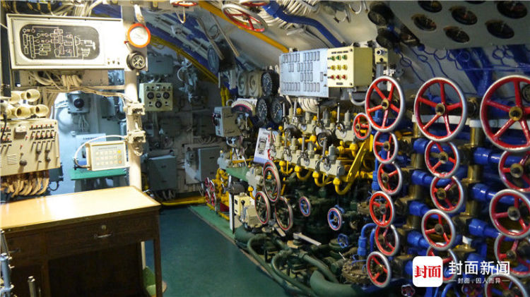 看完鱼雷舱,弯身穿过一个圆形舱门进入指挥舱,这里是全艇的“中枢神经”,舰长室、机要室等都在这一舱,控制潜艇的深度、发布指令都在这一层。