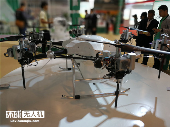 展会上还出现了油动多旋翼无人机的身影,标称载荷达到了60公斤。