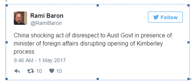 话说,5月1日这天,一个名为“金伯利进程工作组联席会议”的国际会议在珀斯召开。