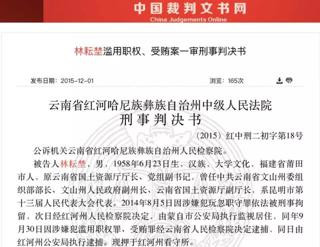 据云南网报道,2015年5月14日,云南省国土资源厅原厅长林耘埜涉嫌滥用职权、受贿案,在云南省红河州中级人民法院一审依法公开开庭审理。