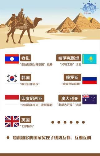 ■ 随着“一带一路”建设的持续推进,越来越多的国家开始把“一带一路”建设与其自身的发展战略对接,如老挝“变陆锁国为陆联国”战略、哈萨克斯坦“光明之路”计划、韩国“欧亚合作倡议”、俄罗斯“欧亚经济联盟”、印尼“全球海洋支点”发展规划、澳大利亚“北部大开发”计划、英国“北部振兴”等,从而使越来越多的国家实现了优势互补、互惠互利。3年多来,已经有100多个国家和国际组织积极响应支持,40多个国家和国际组织同中国签署合作协议,“一带一路”的“朋友圈”不断扩大。中国与“一带一路”沿线国家的产能合作不断深化,已同20多个国家签署了产能合作协议,同17个国家共同建设了46个境外合作区。