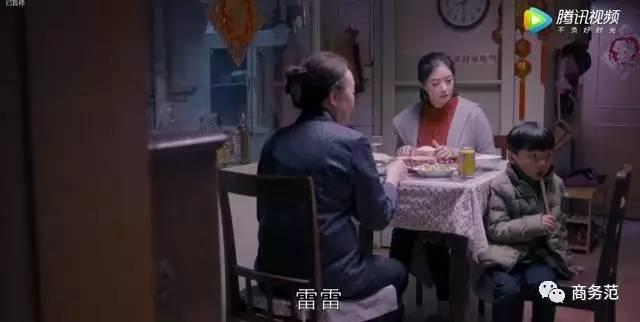 客厅墙上也贴着一些卡片,估计是给雷雷认字用的。老式的电视机放在木柜子上,柜子上放着玩具、水瓶这些杂七杂八的东西,估计樊胜美的老家狭小的空间里,只有这些家用的。