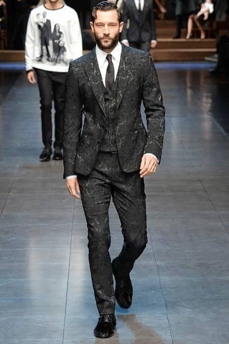 2015秋冬季的黑色织锦缎西服三件套,是送给直男们最奢侈的正装,不华丽就会死。