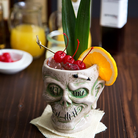 Zombie可能是时下最流行的鸡尾酒,几乎所有受过专业训练的调酒师,都会制作这款鸡尾酒。混合多种朗姆酒、夸张得让人变成“僵尸”的酒精含量,都给这款鸡尾酒增添了浓厚的传奇性。