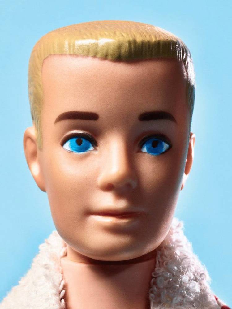 肯娃娃真名是肯·卡森,1961年首次亮相,那时他还是个喜欢穿泳衣的瘦子。几年后,他就长得有棱有角,皮肤黝黑,成了美国男子气概的代言人。他在女孩子的成长期中扮演了重要角色,是女人评判男人的终极标准。