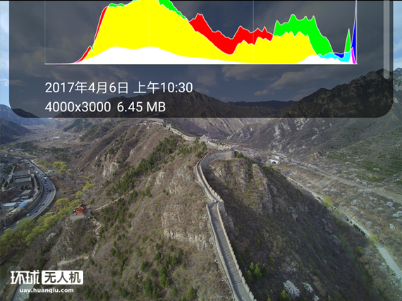 除了飞行平台的性能外,图传也是非常影响用户体验的一项,若是图传给力,那操作起来就像拿手机在地面拍照一样。台风H480的图传清晰度很令人满意,我们在八达岭试飞时,旁边的工作人员希望我们能用无人机帮忙查看路上有没有坏车,事实上看得很清楚。而且在高温时也不卡顿。
