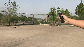 台风HRS版的套装中就包含一个魔棒,魔棒通过按键与不同的垂直角度来实现飞行控制,可以实现遥控器上的绝大部分功能。此外还支持“指哪儿飞哪儿”功能,通过指向控制飞行。魔棒也有GPS,可以作为自动跟踪的信标。