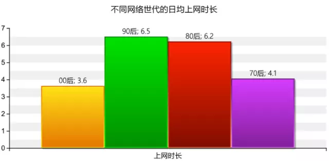 《报告》通过研究社交、工作、游戏、购物等多个场景下的行为特征,发现在上网时间上,80后日均上网时长6.2小时,90后日均上网时长6.5小时。