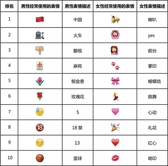 性别不同,用户的输入内容也有差异。据统计,女性青年每人平均每天使用表情2.84次,而男性青年每人平均每天使用表情次数为0.74次,女性是男性的3.83倍。与男性相比,女性的表情使用普遍偏感性。
