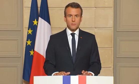 法国总统埃马纽埃尔·马克龙(Emmanuel Macron)先用英语,后用法语发言,说他相信特朗普犯了一个错误。