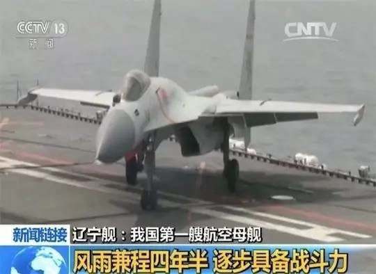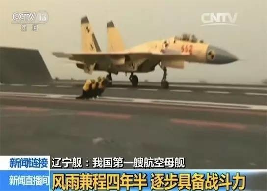 我军飞行员驾驶国产歼-15舰载机首次成功降落航空母舰辽宁舰,一举突破了滑跃起飞、阻拦着舰等飞行关键技术,受到世界空前关注。