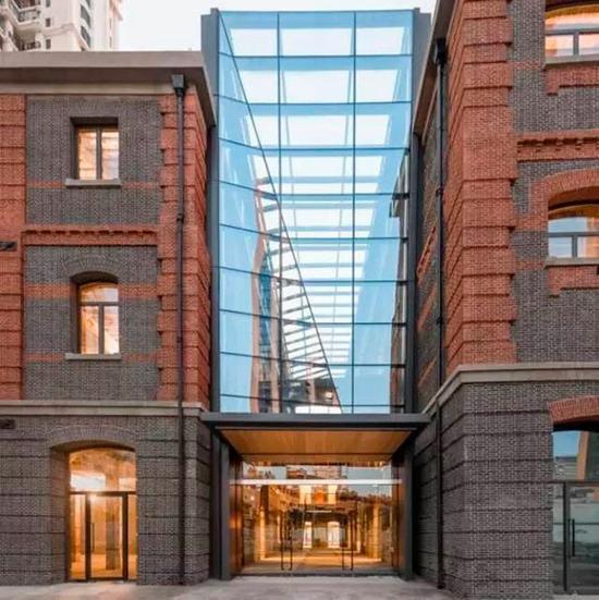 原为永安百货公司纺织品工厂与仓库的新泰仓库也是其中的一座。它建于上世纪20年代初,由当时著名的英商泰利洋行设计建造,为中西混合式风格。位于建筑中部的中央中庭将三层楼的房子划分为南北两部分,北部由三个仓库并联组成,南部则由东西两个仓库及之间的南部中庭构成。仓库外立面青砖清水,红砖嵌饰,窗与门大量采用拱券形式,并配以精美的细部设计,屋顶为歇山形式,其独特的建筑空间组合和结构细部均体现了老上海产业建筑所具有的高质量的建造和施工水准。