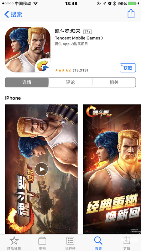 不管你是安卓手机用户,还是苹果手机用户。我们只需要再应用商店中输入“魂斗罗”就能找到这款《魂斗罗:归来》。今天我们以苹果iOS版为例,小试一下这款游戏。