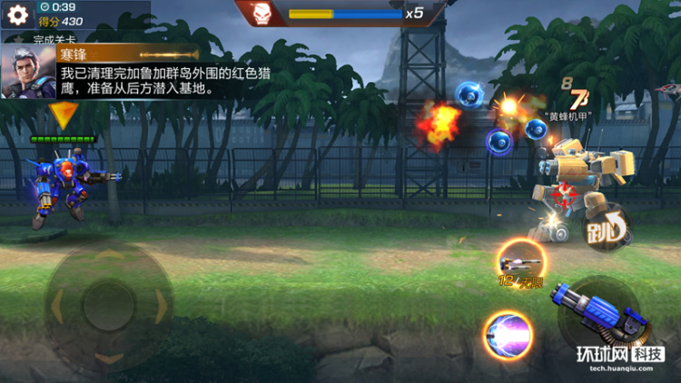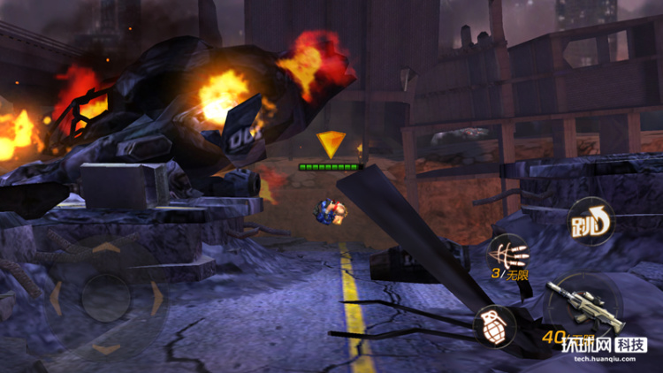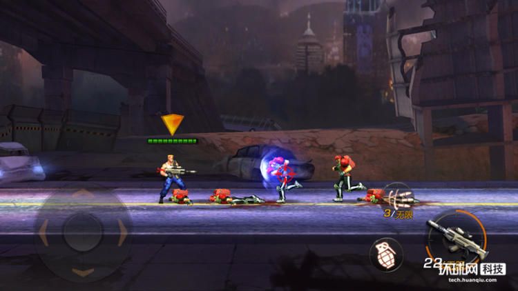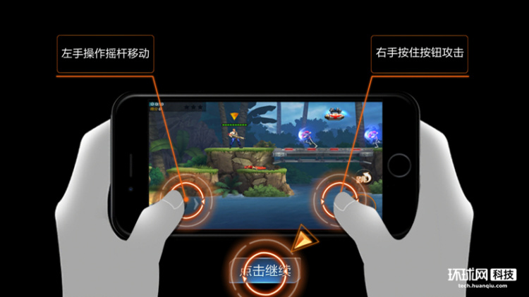 操作方式跟市面上大多数的游戏一样,是通过手机屏幕上的虚拟按键完成。屏幕左边为方向键,右边为射击键。