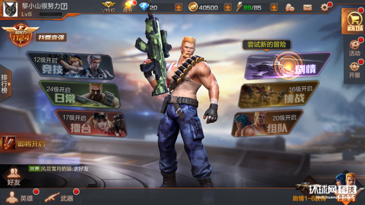 《魂斗罗:归来》提供的六大场景。关于这个界面我就不过多吐槽了,非常标准的腾讯游戏模式。
