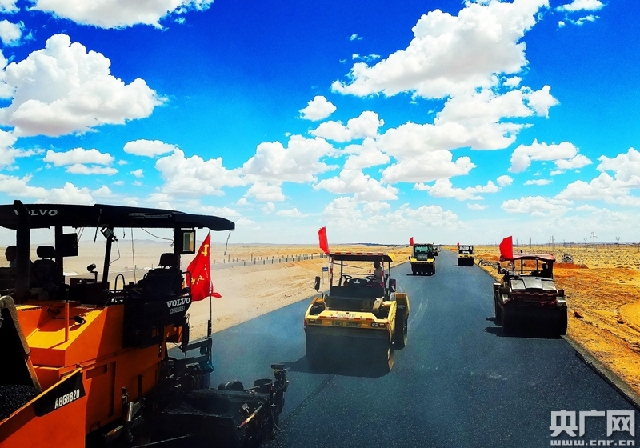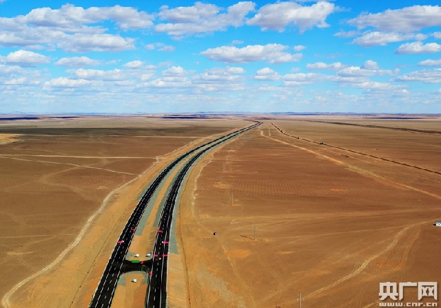 央广网北京6月16日消息(记者郭淼)据中国之声《新闻纵横》报道,京新高速公路内蒙古段本月25日前将完成交工验收,7月10日到15日期间正式开通运营。大家不要小看这条京新高速,它是世界上穿越沙漠最长的高速公路,是继青藏铁路之后,又一个在艰苦地域建设的代表性工程。它横贯东北、华北、西北,全长2540公里,贯通后北京到乌鲁木齐的路程将缩短1300多公里,成为“一带一路”的重要组成部分。在没水没电没信号的浩瀚沙漠中,这条“沙漠之龙”是如何横空出世的?