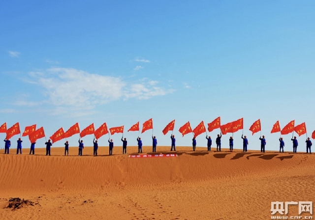 沙漠龙:其中甘苦我最知,就说这没水的问题,我经过的额济纳旗,素有“风起额济纳,沙落北京城”之说,是沙尘暴源头,每年8级以上大风、沙尘暴、扬沙天气有82天到142天,年降水量最少只有35mm。为破解缺水这个最大的难题,中国中铁京新高速总承包管理部总经理孙玉国带领他的团队想了各种办法。