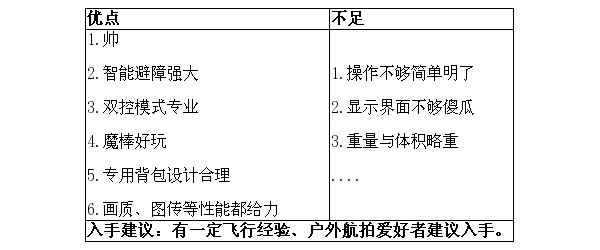 魔棒很好玩,而且很实用。它可以控制飞行、切换模式、拍照/录像、还可以实现傻瓜化的“指哪儿飞哪儿”。但是也因为如此按键很多,建议实用前看好说明书。使用时随身带着魔棒的“小册子”,不然第一次手动降落时会手忙脚乱。