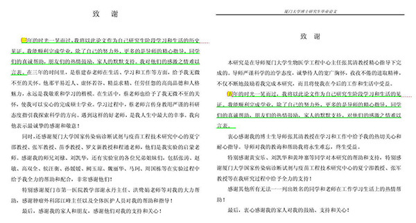 即使是在致谢部分,蔡文致谢的第二段和黄安乐文中致谢的开头,差别仅在于年份。申请硕士学位的黄安乐写下的“三年的时光一晃而过”,复制到蔡文中,变成了“五年的时光一晃而过”。