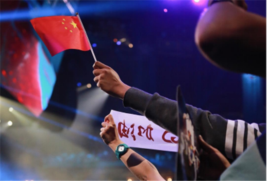 由于参赛者和粉丝来自世界各地,现场还搭建了英文、俄文、中文三种语言同步的战况分析台。
