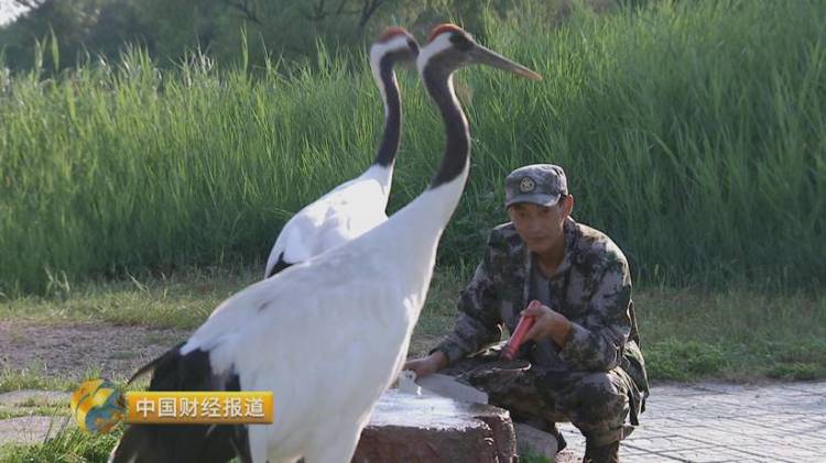 夏季,丹顶鹤开始退羽。王朝他们将羽毛收集起来统一处理,避免羽毛散落到芦苇中。丹顶鹤的好身材,其实来源于它少吃多餐的饮食习惯。王朝他们不但要每天5次喂食,而且,还要分为早、中、晚三次给笼舍打扫卫生。
