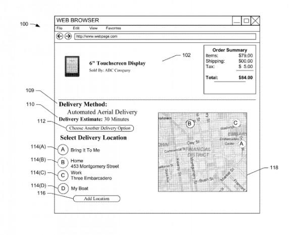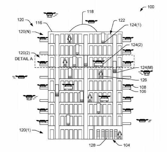 2014年9月,亚马逊申请了一项关于无人机送货系统的专利,但是当时申请失败了。2015年5月份,美国专利商标局公布了该专利的申请详情。这项专利的目的是,当足够多的无人机在高空运货时,形成网络,能够互相交流信息,收集环境数据,更新路线。包括Bring It To Me(带给我)、Home(家里)、Work(工作地点)以及My Boat(小船)四个选项,不管在哪,都能够及时送到客户手中。同时,该系统还可以为无人机更换电池、充电等。但是这一系统需要大量的无人机“加油站”作为支持。