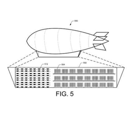 2014年底的另一项专利“空中物流中心”在提交申请不久后顺利获得批准。“空中物流中心”是想要在指定区域的上空建立一种悬浮仓,然后用一种小型的接驳“飞船”将货物运送到目标地附近的悬浮仓,用无人机完成最后一公里配送。