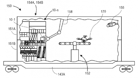 8月初,国外科技媒体The Verge报道称,亚马逊又申请了一项新专利,是关于在运输船、货车等移动物体上启用无人机的技术。亚马逊要在这些大型长途运输设备上搭建无人机移动飞行平台。在大型移动运输设备上搭建高度自动化的集装箱,里面设置可旋转停机坪用于无人机起飞,控制机械臂为无人机装载电池和货物,装载完成后货柜顶部打开,无人机起飞。整个过程也是全自动化,有摄像监控,便于工作人员及时调整修正。据了解,物流公司UPS已经在卡车上测试与之相似的自动化运输系统,称为“多功能联运车”,但是亚马逊目前的技术还只是雏形。