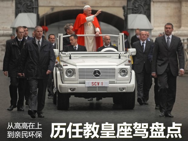 圣若望·保禄二世去世后,本笃十六世成为继任教皇,后者的座驾包括奔驰G 500(W463)、奔驰M级(W166)、沃尔沃XC90及雷诺Kangoo电动车等。