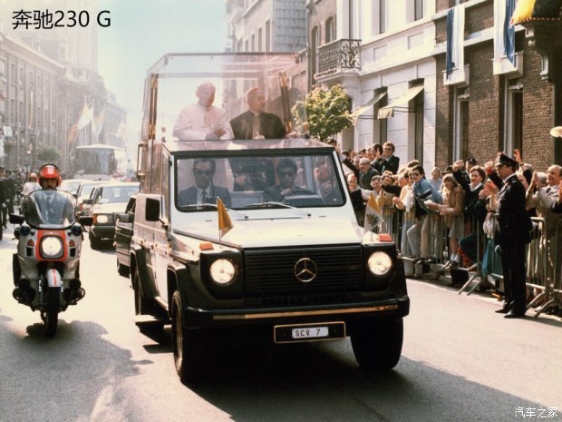 接下来的教皇座驾奔驰230 G(W460)、路虎揽胜、利兰Constructor等都将防弹作为了强制性安全措施,车辆的后半部分被改为由防弹玻璃制成的透明车厢。