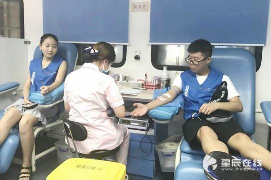 小曹的家人、同学、同事及长沙市中心医院的医护人员等都加入了“献血大军”。 星辰在线 图31人献血帮助渡难关