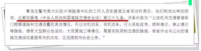 面对质疑,青岛交警市南大队胶州湾隧道中队长纪尚松解释,八大峡广场的每支暴走队伍几乎都排成五列,每晚绕广场走8到10圈,狭窄的人行道根本容纳不下,就占用了车行道。限行前,人车矛盾时有发生。另外,依据《中华人民共和国道路交通安全法》第三十九条:公安机关交通管理部门根据道路和交通流量的具体情况,可以采取限制通行、禁止通行等措施。这就包括大型群众性活动、大范围施工等情况。