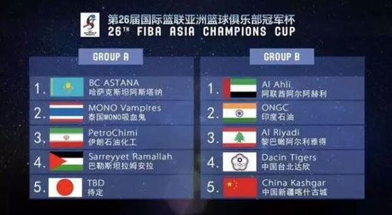 本次杯赛的分组抽签结果也已经出炉,最终新疆队与上届亚军黎巴嫩阿尔利雅德队都分在了B组,他们也将会是新疆队本次杯赛最大的对手之一。B组还有三支球队,分别是阿联酋阿尔阿赫利队、印度石油队和中国台北达欣队。