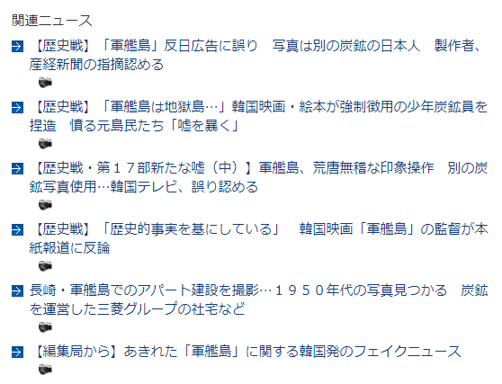 对于《军舰岛》“强征奴隶”等内容,日本《产经新闻》等媒体给予否认。《产经新闻》早在2月电影宣传期时,引用曾在军舰岛挖煤的松本荣(88岁)的话称,“战争期间,因劳动受重伤的朝鲜工人可享受生活保障”。《产经新闻》26日报道称,韩国拍摄该片是因端岛在2015年7月被列为世界文化遗产,引发韩国强烈反对。该报认为,这部政治色彩浓厚的影片会成为日韩民众感情恶化的火种。《产经新闻》还宣称,如果日本对韩国的反日情绪妥协,其他日本史迹也可能受到影响。