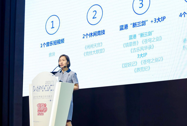 蓝港互动总裁廖明香在大会上发表了题为《双引擎驱动泛娱乐 蓝港互动的IP Maker进阶之路》的演讲,介绍了蓝港互动在泛娱乐布局上的新策略、新阶段,并提出了今年的四个小目标。