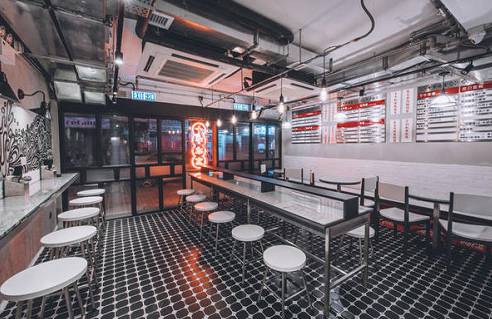 60年代唐楼的门窗,半透明的玻璃,熟悉的大红色十字牌奶盖,马赛克花纹的地板,还有贴满街招的墙身铁闸,全以王家卫电影中的香港为灵感而设计。