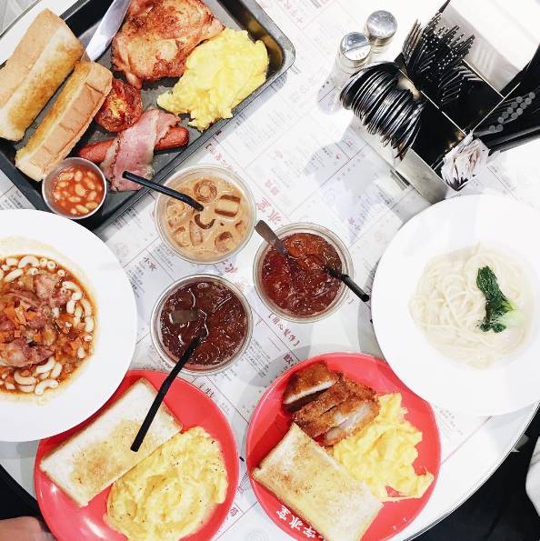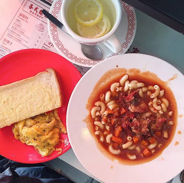 我去的时候已经是下午,餐食以面类为主,可以搭配炒蛋、鸡扒和猪扒。当然,店里也不乏西多士、三文治、菠萝包等经典港式小食。