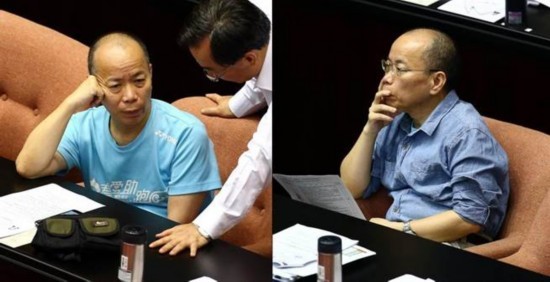2016年6月7日张景森早上赴“立法院”备询时穿蓝色T恤,下午又换成蓝色短袖衬衫,表示“冷气强,怕感冒”,有网友质疑台当局节电不落实。(图片来源:台湾《中时电子报》)