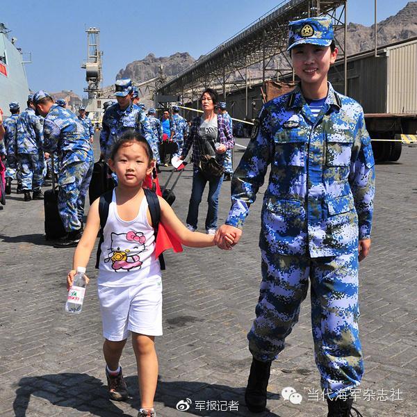 2015年4月,一张普普通通的照片被国人刷屏。一名海军女兵牵着5岁小女孩上军舰,背景是战火硝烟弥漫的也门亚丁港。但照片中穿着凯蒂猫背心的小女孩轻松得像是去参加春游。