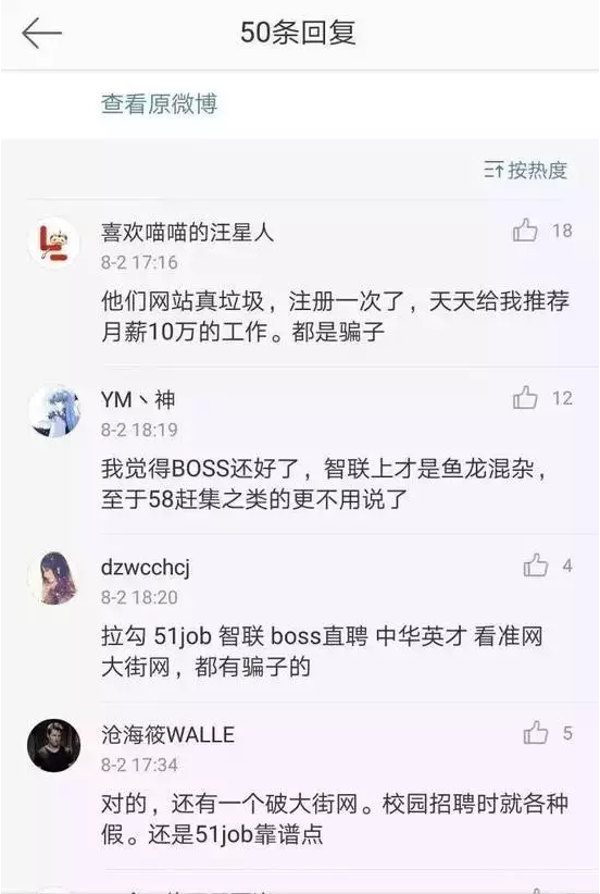 在网上, 还有不少人分享过与李文星相似的经历。网络招聘乱象丛生,虚假资料几乎充斥在各大招聘平台,各大平台几乎无一幸免。
