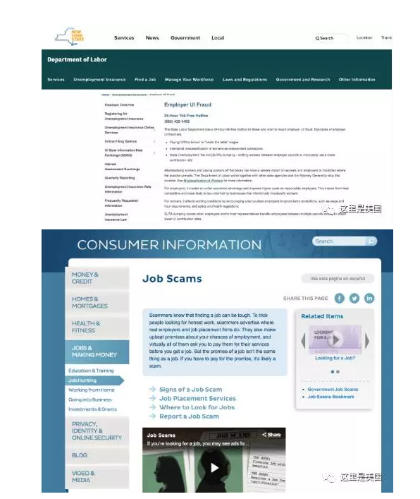 另外州政府一级的劳工局和联邦政府的联邦贸易委员会,对招聘欺诈的犯罪设有专门部门处理,并公布有投诉的电话。