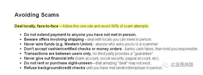 而像全美最大的信息平台Craigslist,在找工作一栏,会首先提示你典型、常见的招聘欺诈类型是什么,以及回避的方法。