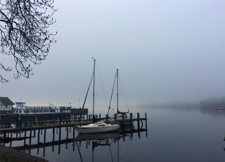 不知不觉中,伴着满山的白脸羊咩咩的叫声,爬上格拉斯米尔北部的小山丘时。太阳,正费劲钻出厚厚的云雾,尝试着射出暖人的光芒。清新与蔚蓝的雾气经过彼此一夜拥吻,释放出一种甜蜜的味道,令人陶醉痴迷。难怪济慈说:“温德米尔湖让人忘掉生活的区别:年龄、财富。”虽然我们无法安排在它最美的夏季造访,面对眼前这满目春意盎然的翠绿,缎面般宁静的湖水,远处阵阵漂浮的炊烟,大自然在晓雾里不经意画出的还未干透的水彩画,还是让旅人感到无比的安宁和惬意。