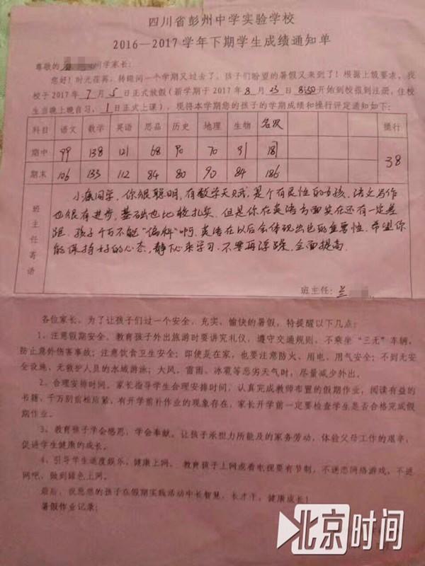 康琦是四川省彭州中学实验学校初一的学生,如果不出意外的话, 9月1日她将正式开始初二的学习生活。