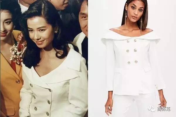 领口低开的双排扣白色西装,让红姑这张照片成为经典。而右边英国电商Missguided的这件Lookbook款,是不是看上去和红姑的一毛一样。